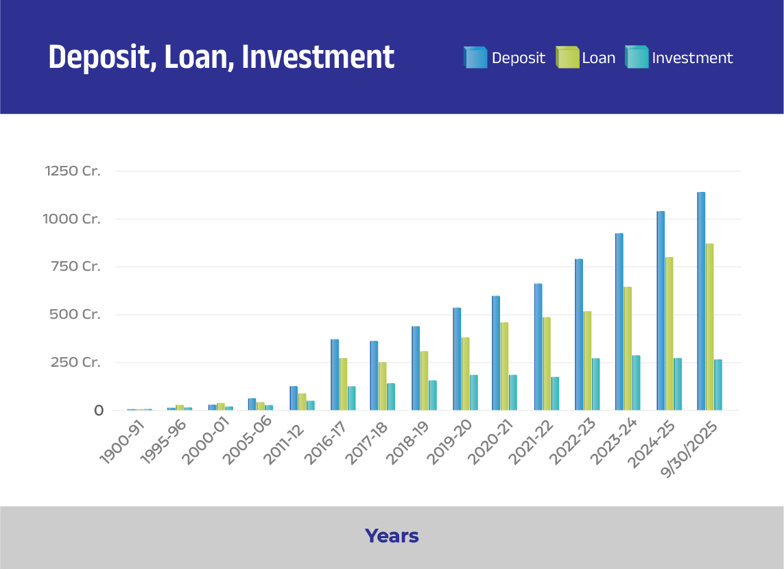 | Years | Member | Deposits (Amounts in rupees) | Loan | Gold Loan | Investment | Audit Group |