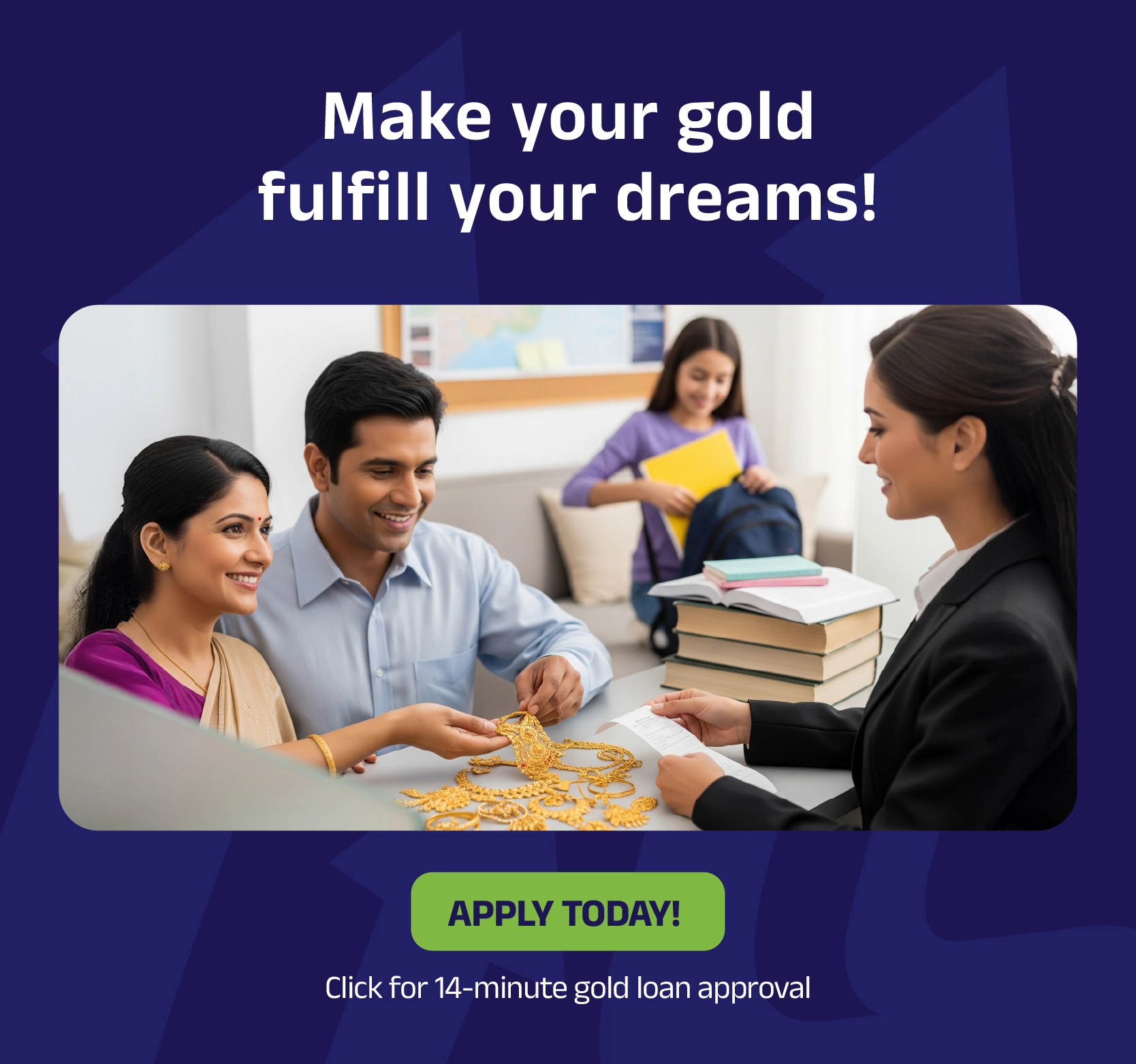 Gold is an asset that is popular in homes across India. And now, this gold can become your biggest asset in the form of a gold loan. Samata Gold Loan comes with fastest approval in just 14 minutes and minimum interest rate of 6%. With minimum documentation needed, use Samata Gold Loan to fulfill your dreams like a child's education, a dream vacation or any family emergency.
