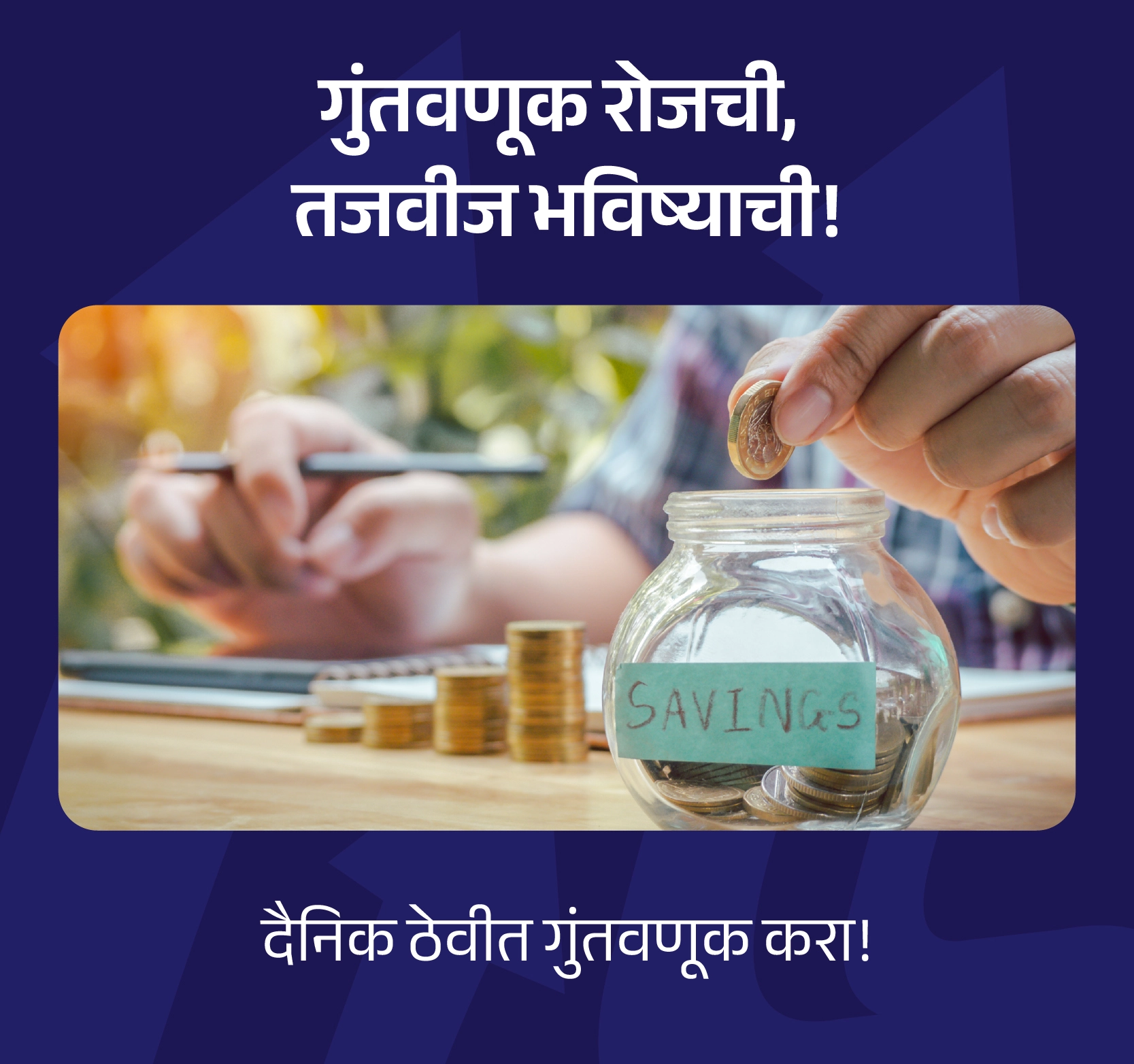 खात्यात फक्त मोठी बचत जमा करता येते असे कोण म्हणतो? दैनिक ठेवींसह, आमचे प्रतिनिधी दररोज तुमच्या घरी येतील आणि त्या दिवसाची तुमची बचत गोळा करून तुमच्या दैनिक ठेव खात्यात जमा करतील. लहान मुलं, गृहिणी, दुकानदार, छोटे व्यावसायिक आणि पगारदार लोकांसाठी हे गुंतवणुकीचं आदर्श साधन आहे. हे विमा हप्ता भरणे, मुलांचे शिक्षण, लग्न किंवा घरातील इतर कार्यक्रम, वार्षिक कर भरणे अशा महत्त्वाच्या उद्दिष्टांसाठी संपत्ती निर्माण करण्यास मदत करते.